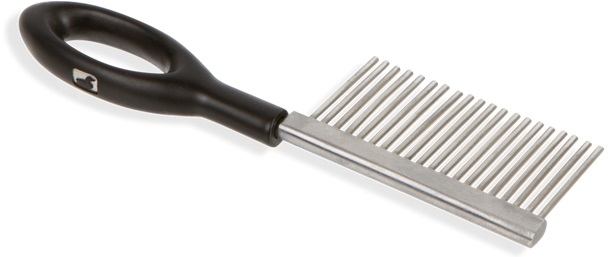 The solution to unruly materials at the vise or mangled streamers on the water. The ergonomic powder coated tool is easy find and comfortable in hand, and the stainless steel shaft and teeth make quick work of messy flies at the bench or on the water.