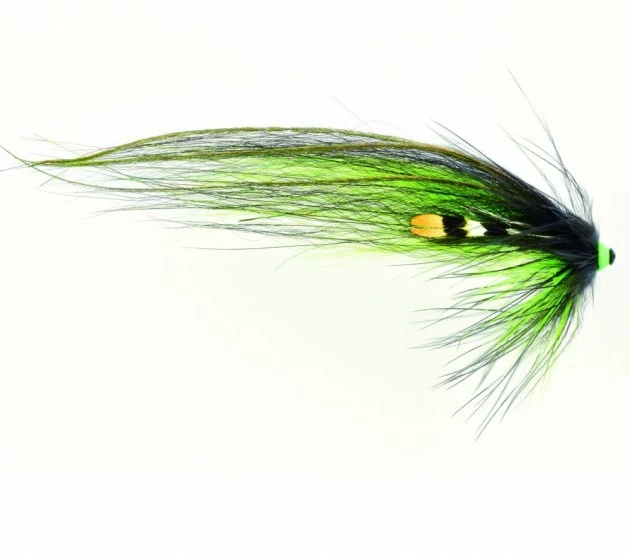 Nyhet! Fås i 6 og 9 cm. This black and green fly is now after more than 20 years a true favourite to me and many of my friends. A classic combination that in this weighted version probably will make the pattern keep on catching great fish. I fish it with a M or S fl. chartreuse FITS as steering tube. On the clear river that cloudy day it can do miracles.